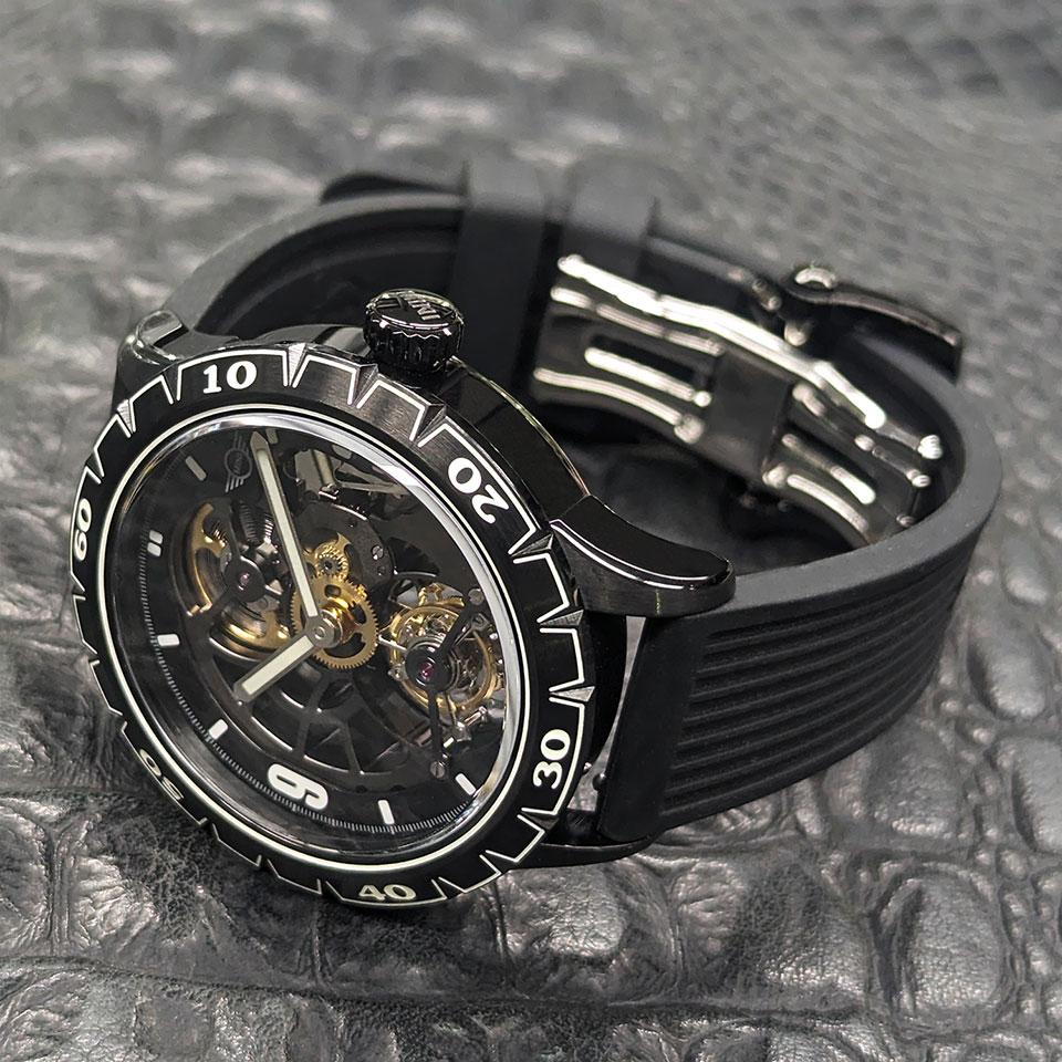 MINI SKELETON TOURBILLON MST-1 BLACK / BLACK Rubber Strap 161901