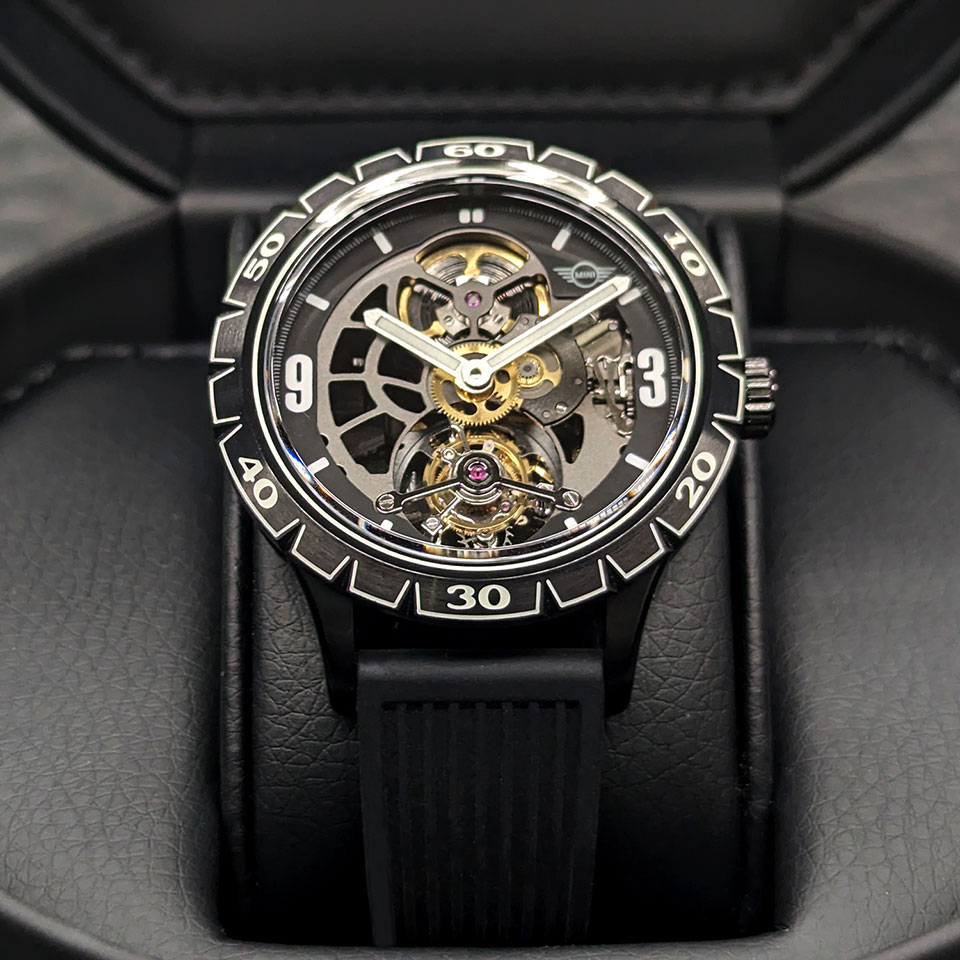 この新しい腕時計は、世界的に有名な自動車ブランド MINI のDNAが注ぎ込まれており、MINI の革新と精密工学の精神を体現したトゥールビヨンウォッチです。