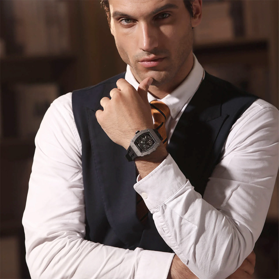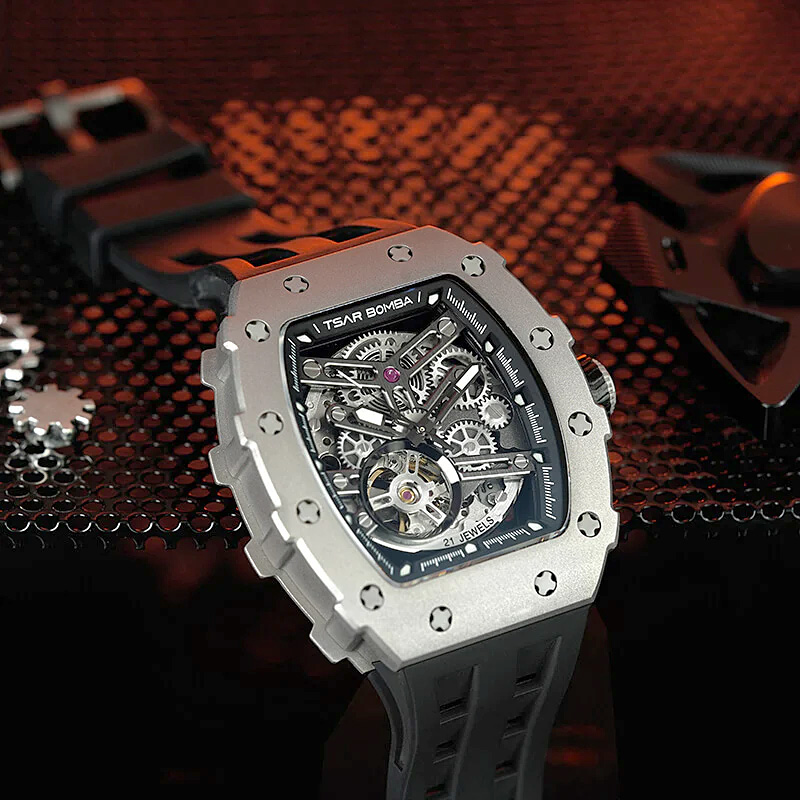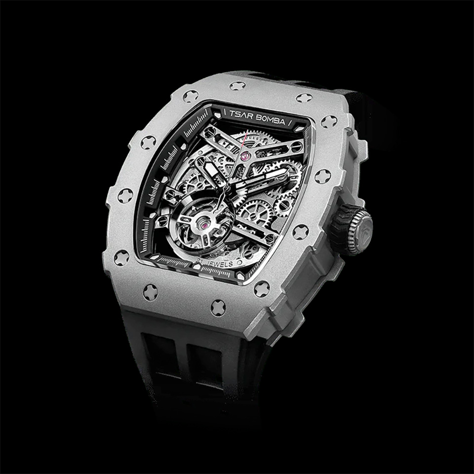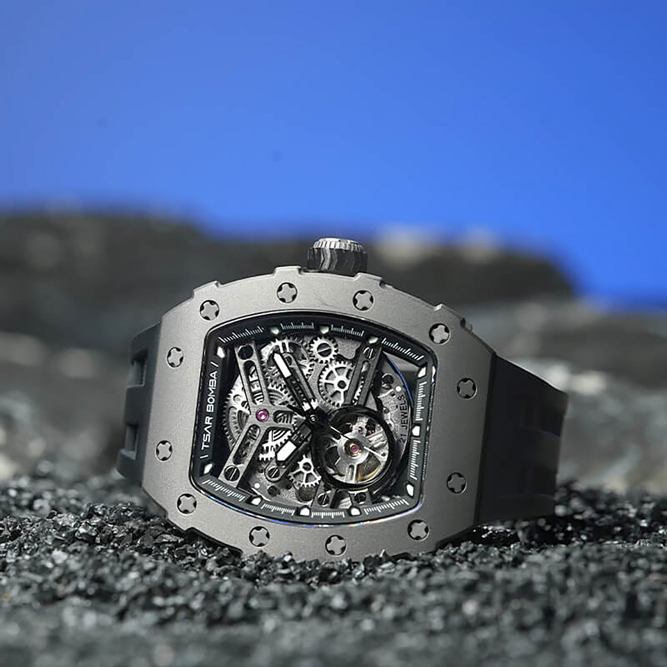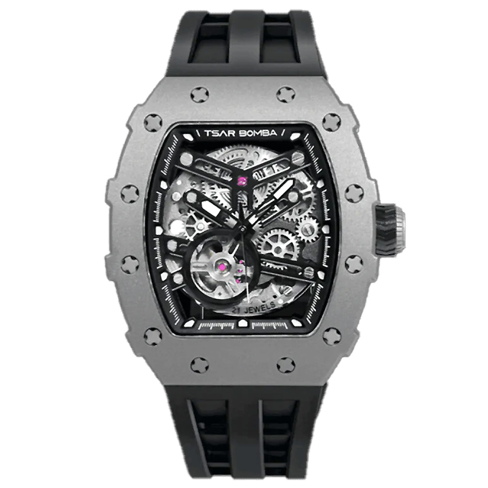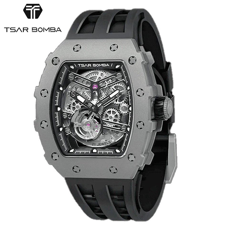 TSARBOMBA TB8208T-01 チタン ガンメタル/ブラック サーボンバ スケルトン腕時計