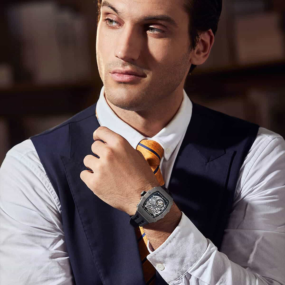 TSAR BOMBA ELEMENTAL SERIES Automatic Watch TB8208T-31 Titanium Case Black/Titanium