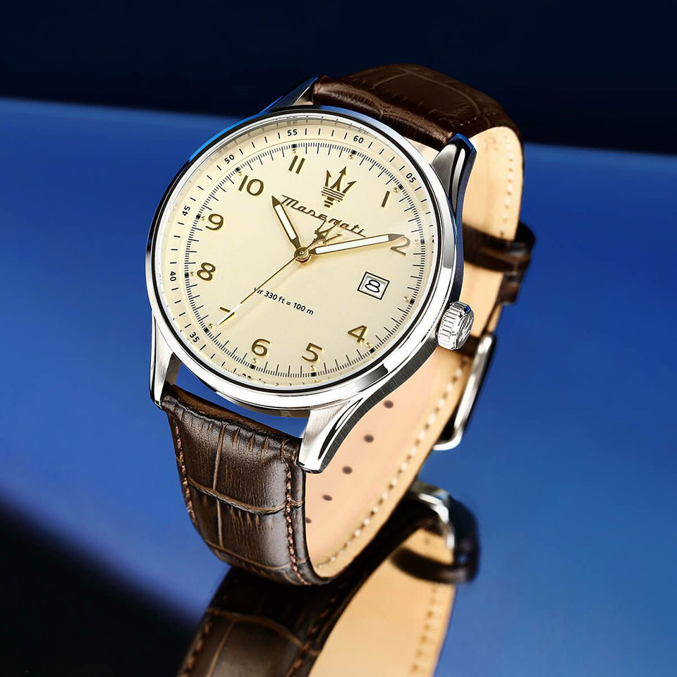 マセラティ ウォッチ ソルパッソ アイボリー/ブラウン レザーベルト R8851124004