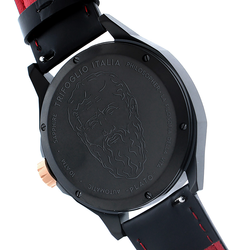 裏蓋には、古代ギリシャを代表するフィロソファーであるプラトンの肖像がレーザー刻印されています。