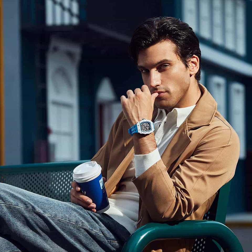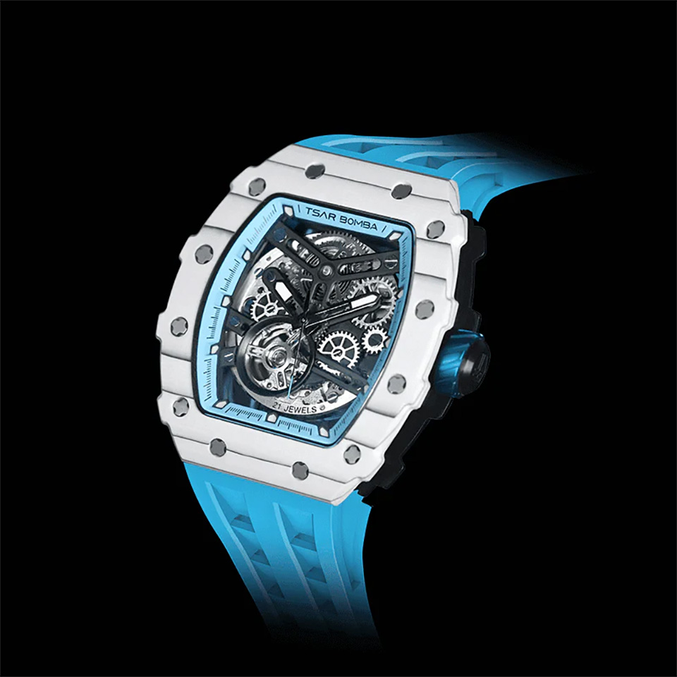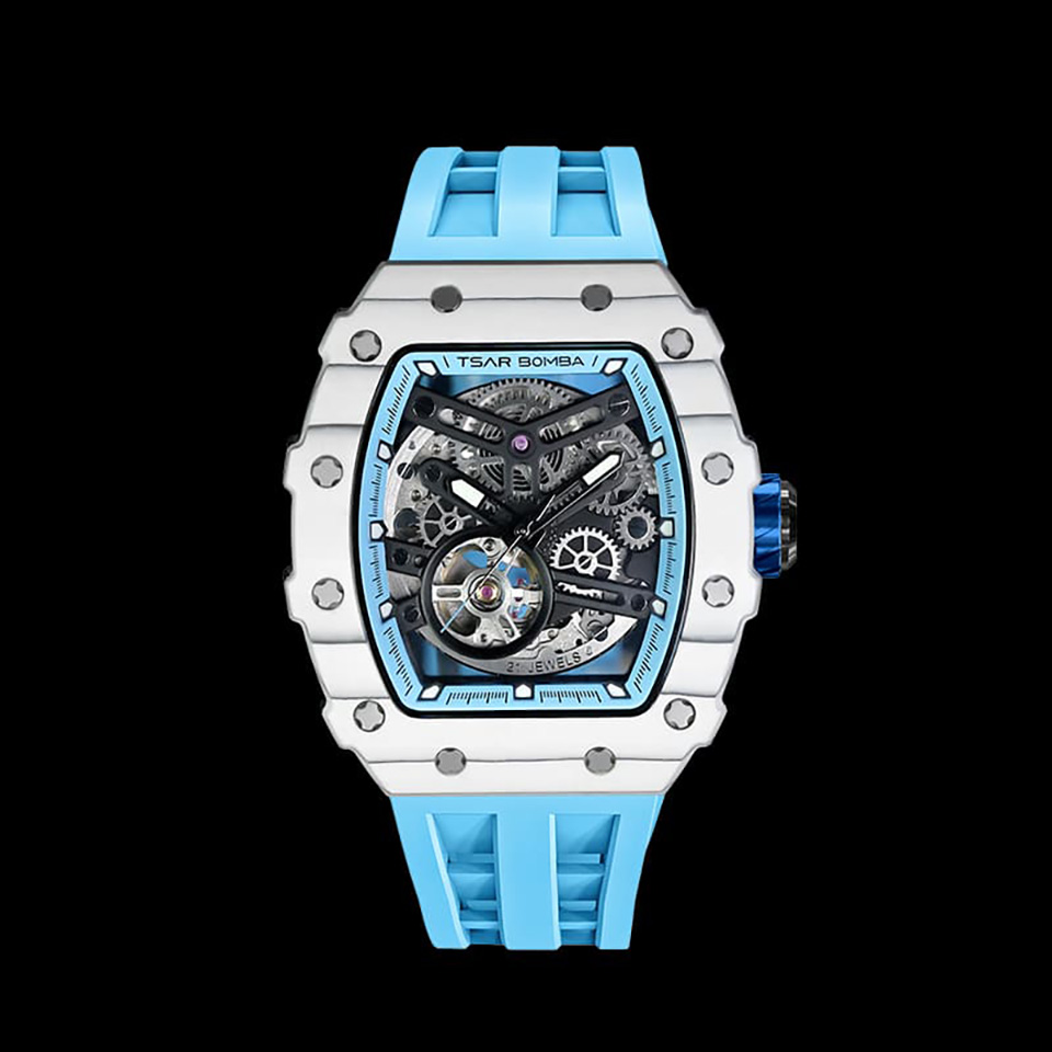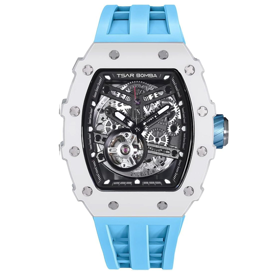 TSARBOMBA TB8208C-06 セラミック ホワイト/ライトブルー サーボンバ スケルトン腕時計