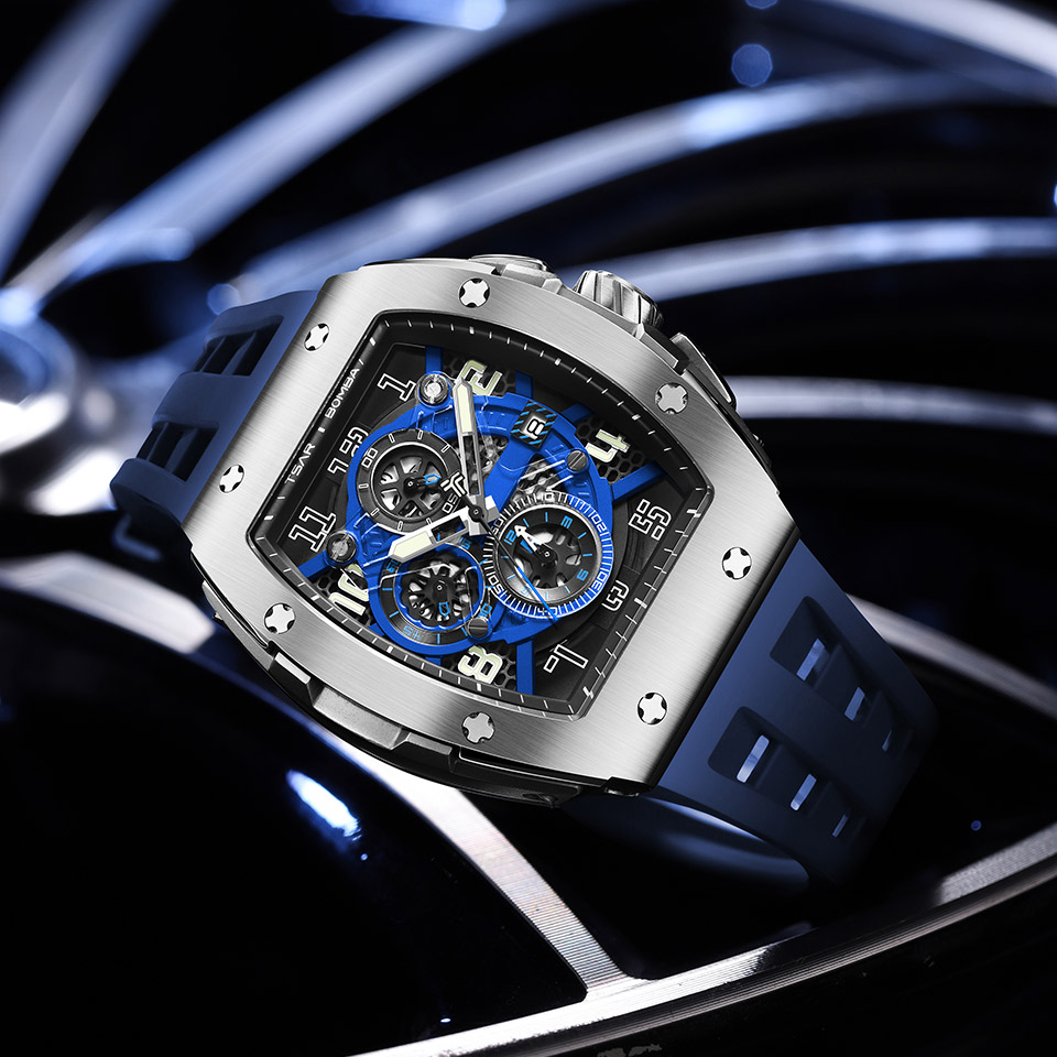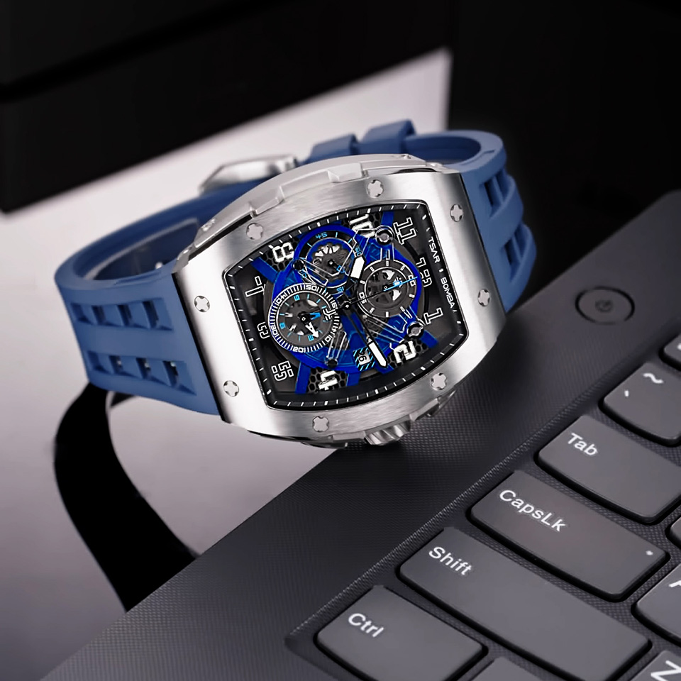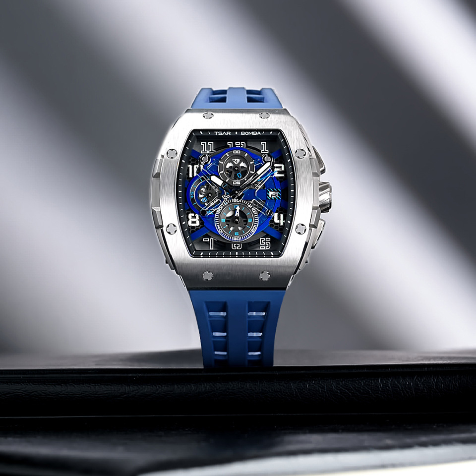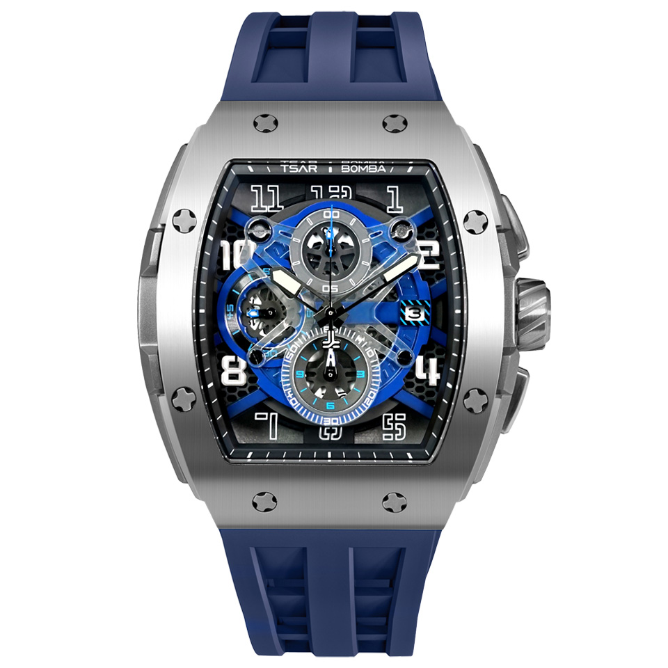 TSARBOMBA TB8211Q-03 SS ブルー/シルバー サーボンバ トノー型腕時計